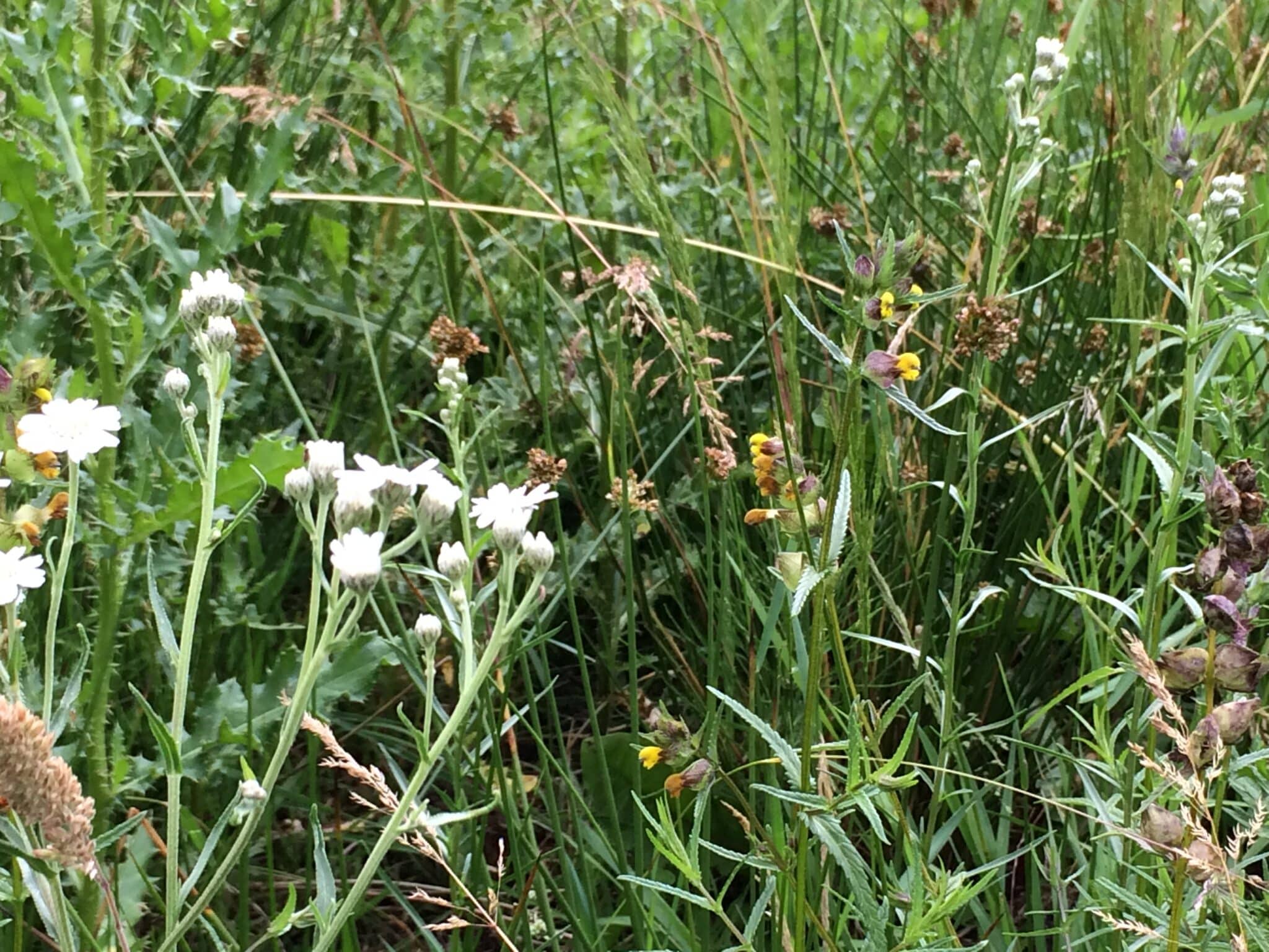 I det lange græs vil der hurtigt indfinde sig frøer, græshopper og andre insekter. Sommerfuglene engrandøje og græsrandøje lever i langt græs og vil formentlig flytte ind. Efterhånden kommer der også blomstrende planter i engen. De første arter er nok brændenælder og agertidsel, som vi normalt opfatter som grimt ukrudt. Men hvis du kan tåle synet, er brændenælde en vigtig værtsplante for en række sommerfuglearter, og alle tidsler er rige på nektar til insekterne og frø til fuglene. Lige så stille vil andre arter af vilde blomster og græsser komme til.